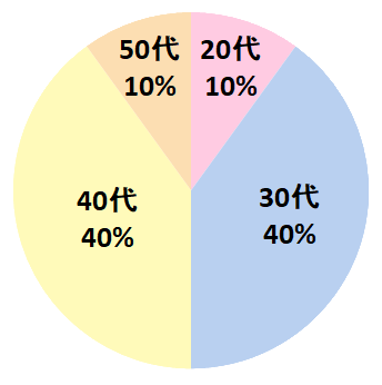30代と40代のお客様がそれぞれ4割を占めており、全体の約8割が30〜40代の方となっています。