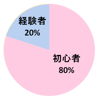 初心者が80%、経験者が20%と、初めてピラティスを始める方が多いのが特徴です。