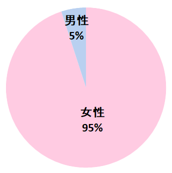 男女の比率は女性が約95%を占めており、ほとんどが女性利用者です。